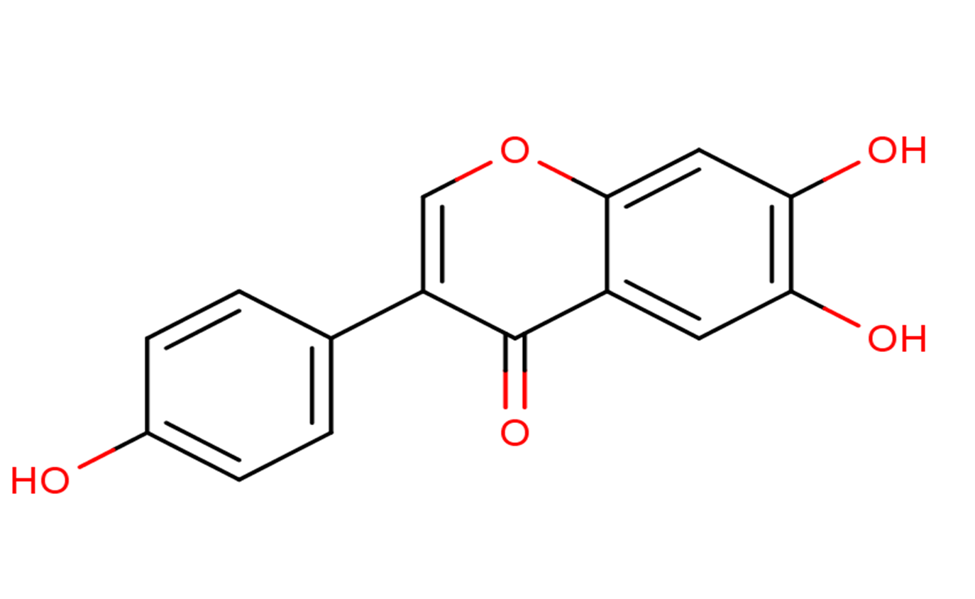 Description6,7,4'-Trihydroxyisoflavone, is a novel inhibitor of PKCα in suppressing solar UV-induced matrix metalloproteinase 1, which has antioxidant, and anti-cancer activities.Molecular studies showed that 6,7,4'-THIF significantly inhibited acetylcholinesterase and thiobarbituric acid reactive substance (TBARS) activities in the hippocampus of scopolamine-induced mice.In addition, immunohistochemistry and Western blot results revealed that 6,7,4'-THIF significantly increased brain-derived neurotrophic factor (BDNF) and phosphor cAMP response element binding (CREB) in the hippocampus of mice. A single administration of 6,7,4'-THIF significantly improved scopolamine-induced cognitive dysfunction in these in vivo tests. Moreover, treatment with 6,7,4'-THIF alone enhanced learning and memory performance in the same behavioral tests. 6,7,4'-THIF improves cognitive dysfunction induced by scopolamine and enhances learning and memory by activation of the cholinergic system and the p-CREB/BDNF signaling pathway in mice.