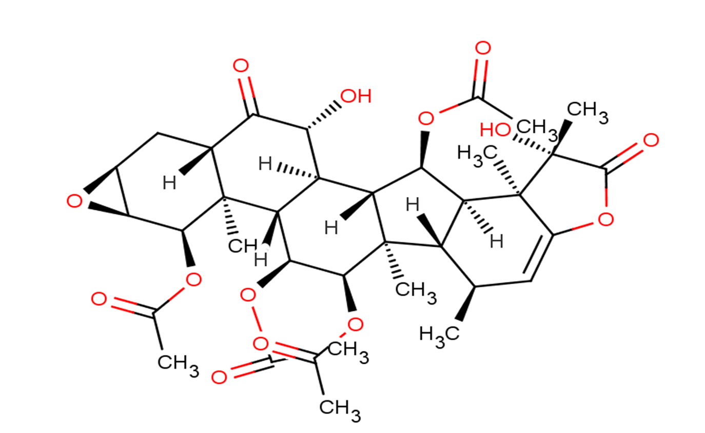 SMILESC[C@@]12[C@]([C@@H](OC(C)=O)[C@]3([H])[C@]2([H])[C@@H](C=C(O4)[C@@]3([C@](O)(C4=O)C)C)C)([H])[C@@]([C@H]5O)([H])[C@]([C@]6([C@H]([C@@H](O7)[C@@H]7C[C@]6([H])C5=O)OC(C)=O)C)([H])[C@H](OC(C)=O)[C@@H]1OC(C)=O