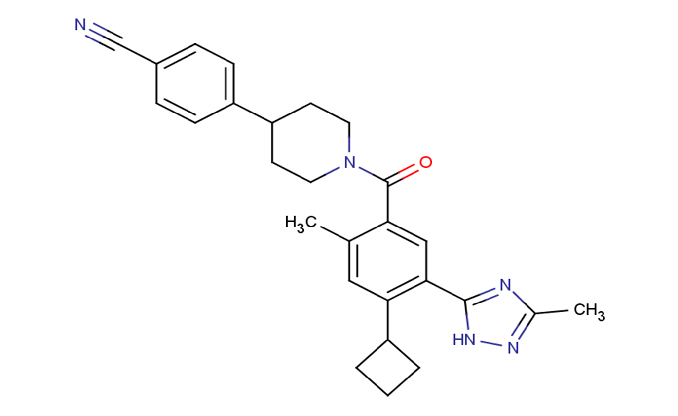 SMILESN#CC1=CC=C(C2CCN(C(C3=CC(C4=NC(C)=NN4)=C(C5CCC5)C=C3C)=O)CC2)C=C1