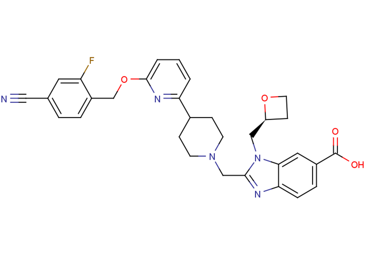 SMILESOC(C1=CC=C(N=C(CN2CCC(C3=NC(OCC4=CC=C(C#N)C=C4F)=CC=C3)CC2)N5C[C@H]6OCC6)C5=C1)=O
