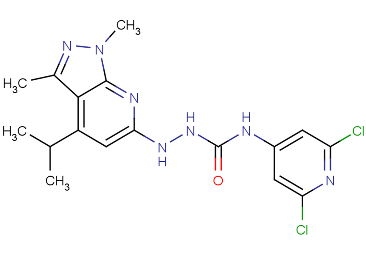 SMILESCC(C1=C2C(N(C)N=C2C)=NC(NNC(NC3=CC(Cl)=NC(Cl)=C3)=O)=C1)C