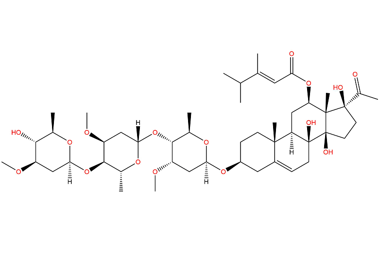 SMILESO[C@]([C@@]([C@]1([H])C2)(CC=C3[C@@]1(CC[C@H](O[C@@](O[C@H](C)[C@H]4O[C@@](O[C@H](C)[C@H]5O[C@@](O[C@H](C)[C@H]6O)([H])C[C@H]6OC)([H])C[C@@H]5OC)([H])C[C@@H]4OC)C3)C)O)(CC[C@@]7(O)C(C)=O)[C@@]7([C@@H]2OC(/C=C(C)/C(C)C)=O)C