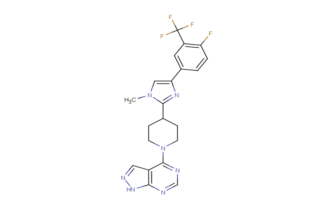 SMILESCN1C=C(N=C1C2CCN(CC2)C3=NC=NC4=C3C=NN4)C5=CC(=C(C=C5)F)C(F)(F)F