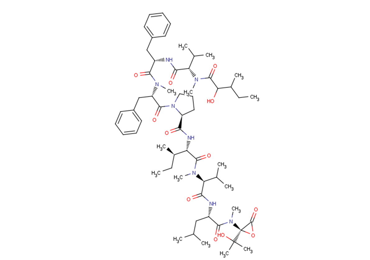 SMILESCC(C)(O)[C@@]1(C(O1)=O)N(C([C@H](CC(C)C)NC([C@H](C(C)C)N(C([C@H]([C@H](C)CC)NC([C@H]2N(C([C@H](CC3=CC=CC=C3)N(C([C@H](CC4=CC=CC=C4)NC([C@H](C(C)C)N(C(C(O)C(C)CC)=O)C)=O)=O)C)=O)CCC2)=O)=O)C)=O)=O)C