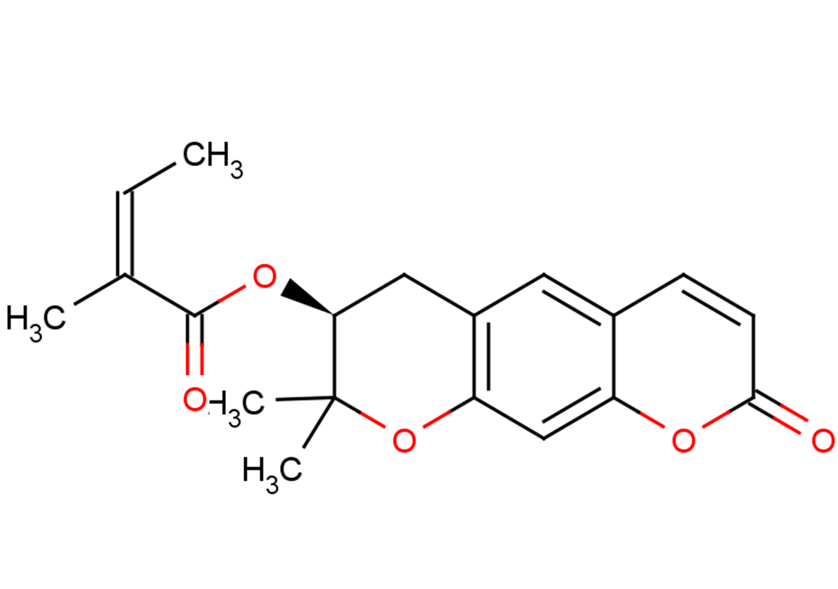 Brief DescriptionDecursinol angelate has anti-tumor, anti-inflammatory, anti-oxidant, and hepatoprotective activities, it inhibits VEGF-induced angiogenesis via suppression of the VEGFR-2-signaling pathway.