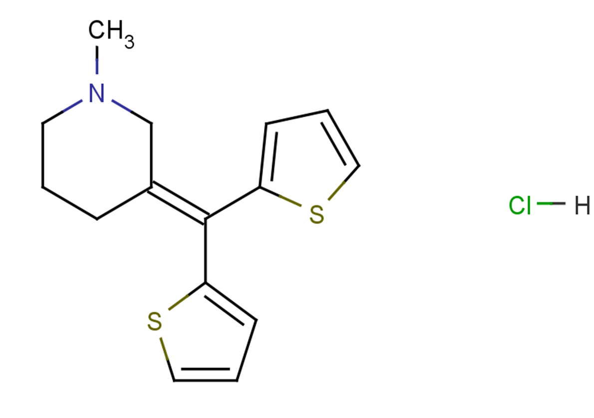 SMILESCN1C/C(CCC1)=C(C2=CC=CS2)\C3=CC=CS3.[H]Cl