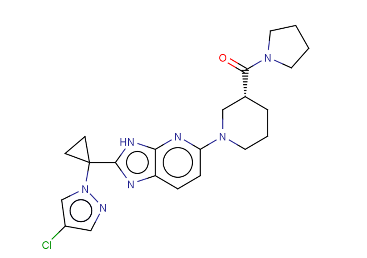 SMILESO=C([C@H](CCC1)CN1c(cc1)nc2c1nc(C1(CC1)n1ncc(Cl)c1)[nH]2)N1CCCC1