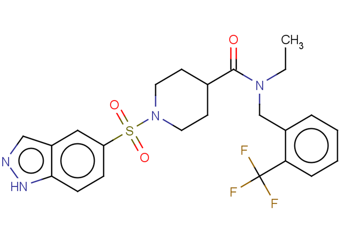 SMILESCCN(C(=O)C1CCN(CC1)S(=O)(=O)c1ccc2c(c1)cn[nH]2)Cc1ccccc1C(F)(F)F