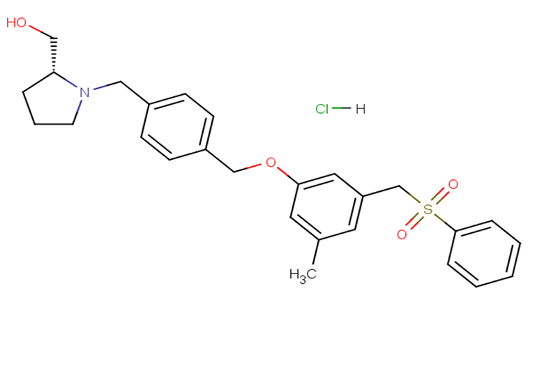SMILESOC[C@@H]1N(CC2=CC=C(COC3=CC(CS(=O)(C4=CC=CC=C4)=O)=CC(C)=C3)C=C2)CCC1.[H]Cl