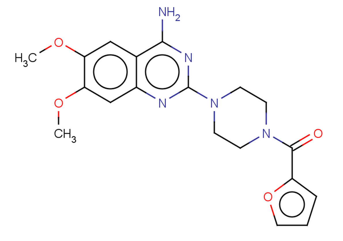 DescriptionPrazosin, an α1-blocker, acts as an inverse agonist at alpha-1 adrenergic receptors and is used to treat hypertension.