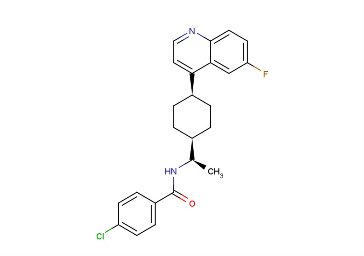 SMILESO=C(N[C@@H]([C@H]1CC[C@@H](C2=CC=NC3=CC=C(F)C=C23)CC1)C)C4=CC=C(Cl)C=C4