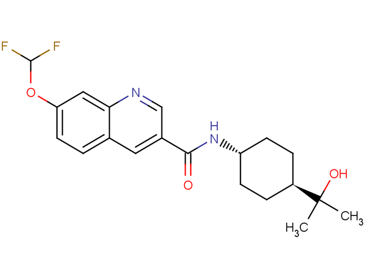 SMILESFC(F)OC1=CC=C2C(N=CC(C(N[C@@H]3CC[C@@H](C(C)(C)O)CC3)=O)=C2)=C1
