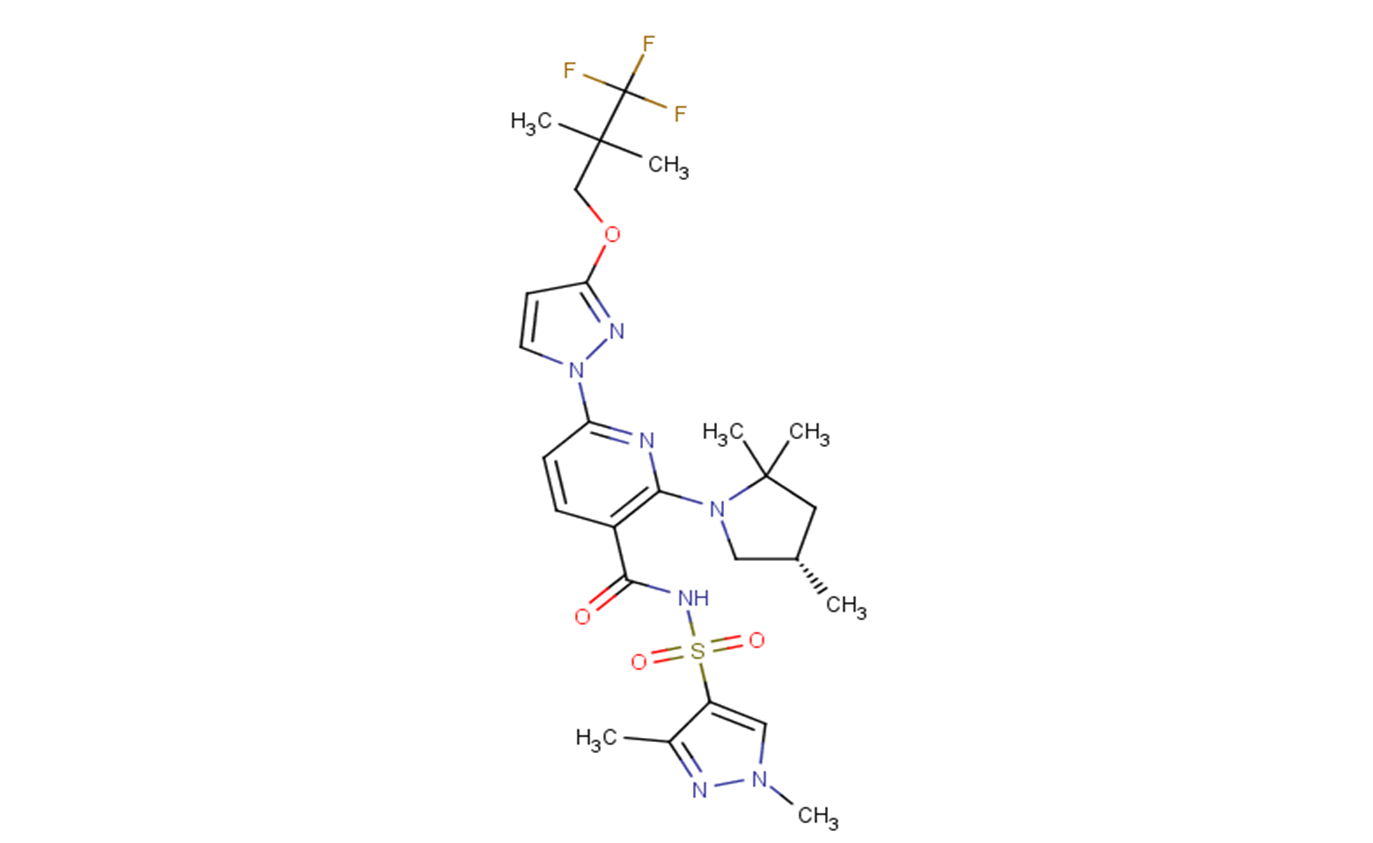 SMILESC[C@H]1CC(N(C1)C2=C(C=CC(=N2)N3C=CC(=N3)OCC(C)(C)C(F)(F)F)C(=O)NS(=O)(=O)C4=CN(N=C4C)C)(C)C