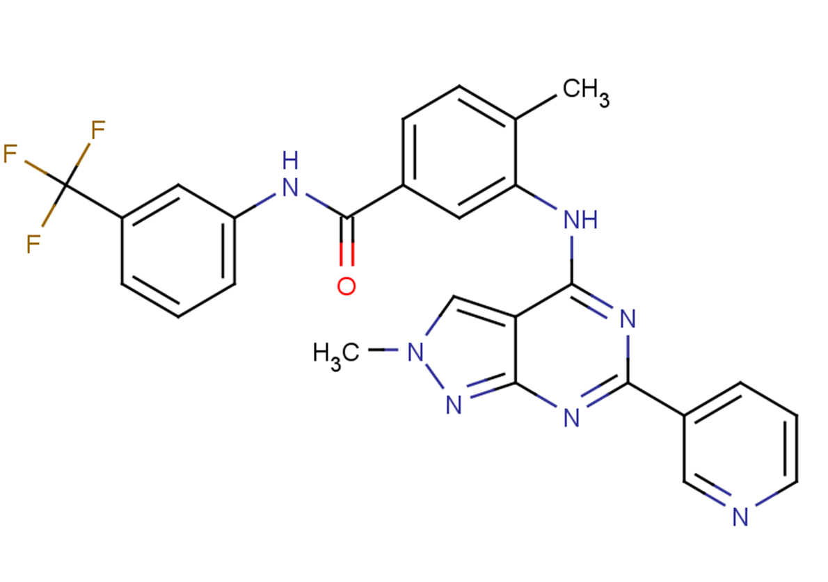 SMILESO=C(NC1=CC=CC(C(F)(F)F)=C1)C2=CC=C(C)C(NC3=NC(C4=CC=CN=C4)=NC5=NN(C)C=C53)=C2