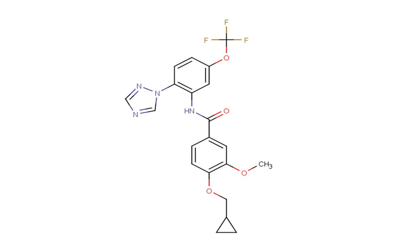 SMILESCOC1=C(C=CC(=C1)C(=O)NC2=C(C=CC(=C2)OC(F)(F)F)N3C=NC=N3)OCC4CC4