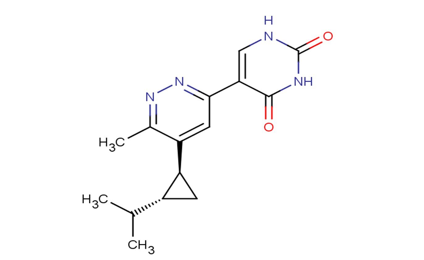 SMILESCC1=NN=C(C=C1[C@H]2C[C@@H]2C(C)C)C3=CNC(=O)NC3=O