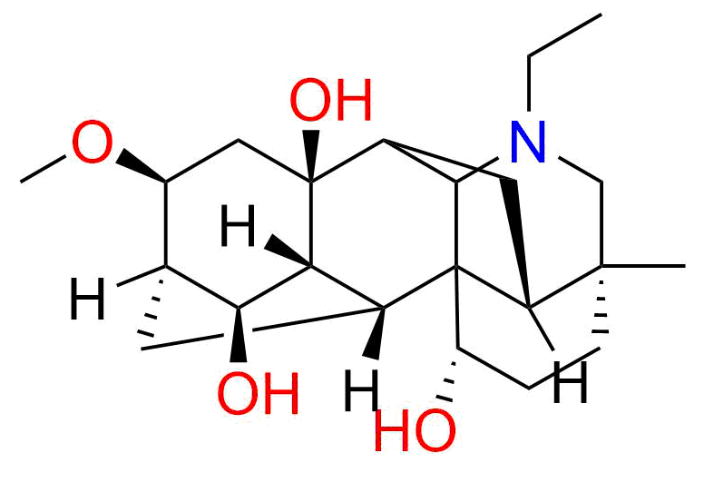 SMILESO[C@@H]1C23C4C([C@]5(O)[C@]6([H])[C@@]3([H])C[C@@]([C@@H](OC)C5)([H])[C@@H]6O)C[C@]2([H])[C@@](CN4CC)(C)CC1