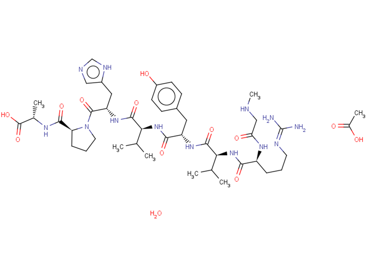 SMILESCC(C)[C@@H](C(N[C@@H](Cc1cnc[nH]1)C(N(CCC1)[C@@H]1C(N[C@@H](C)C(O)=O)=O)=O)=O)NC([C@H](Cc(cc1)ccc1O)NC([C@H](C(C)C)NC([C@H](CCCN=C(N)N)NC(CNC)=O)=O)=O)=O.CC(O)=O.O