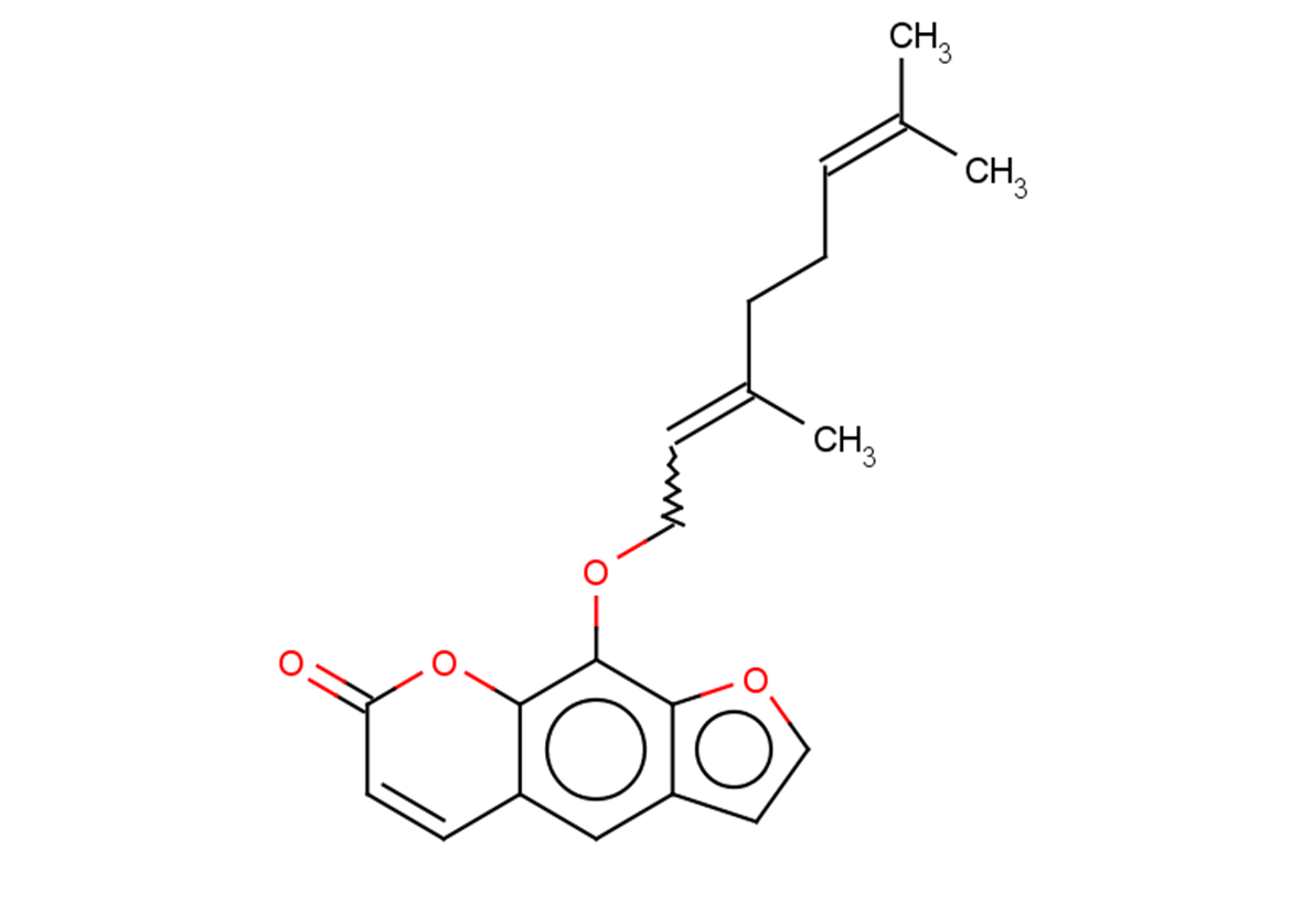 Description8-Geranyloxypsoralen inhibits α2-secretase (BACE1) activity in non-competitive manner, with the IC(50) values <25.0 μM, it can induce vasorelaxation on rat arterial tissues. 8-Geranyloxypsoralen possesses nematicidal activities, the median lethal concentrations (LC(50)) is 188.3 mg/ L against B. xylophilus and is 117.5 mg/L against P. redivivus.