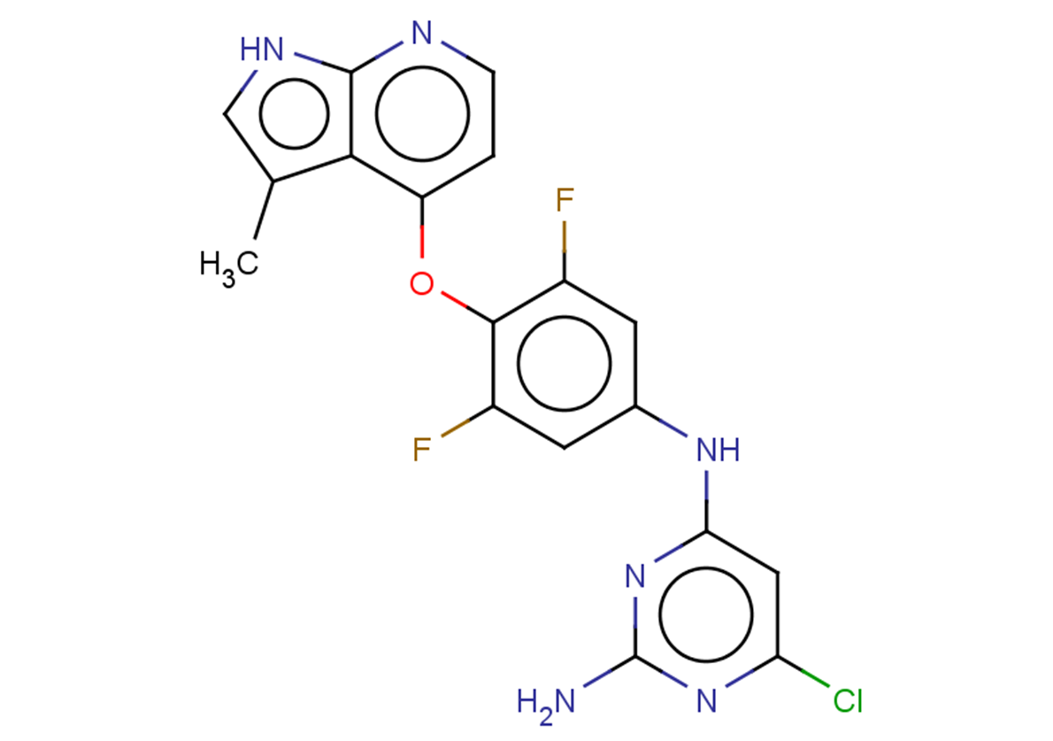 SMILESCc1c[nH]c2nccc(Oc(c(F)cc(Nc3cc(Cl)nc(N)n3)c3)c3F)c12