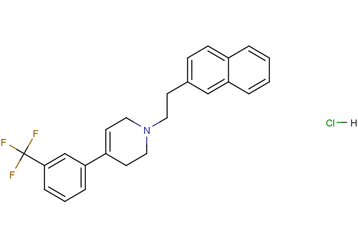 SMILESFC(C1=CC(C2=CCN(CCC3=CC=C4C=CC=CC4=C3)CC2)=CC=C1)(F)F.[H]Cl