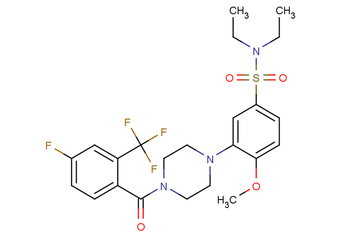SMILESO=S(C1=CC=C(OC)C(N2CCN(C(C3=CC=C(F)C=C3C(F)(F)F)=O)CC2)=C1)(N(CC)CC)=O