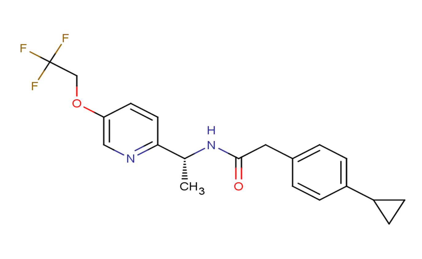 SMILESC[C@H](C1=NC=C(C=C1)OCC(F)(F)F)NC(=O)CC2=CC=C(C=C2)C3CC3