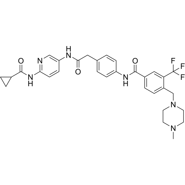 SMILESCN1CCN(Cc2ccc(cc2C(F)(F)F)C(=O)Nc2ccc(CC(=O)Nc3ccc(NC(=O)C4CC4)nc3)cc2)CC1