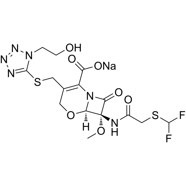 SMILES[H][C@]12OCC(CSc3nnnn3CCO)=C(N1C(=O)[C@]2(NC(=O)CSC(F)F)OC)C(=O)O[Na]