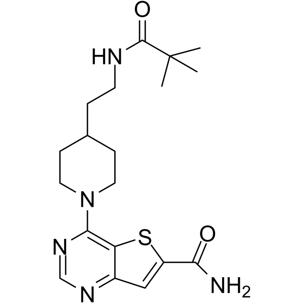SMILESCC(C)(C)C(=O)NCCC1CCN(CC1)c1ncnc2cc(sc12)C(N)=O