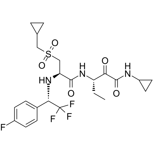 SMILESCC[C@H](NC(=O)[C@H](CS(=O)(=O)CC1CC1)N[C@@H](c1ccc(F)cc1)C(F)(F)F)C(=O)C(=O)NC1CC1