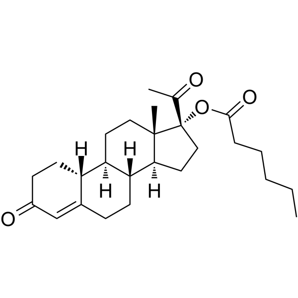 SMILES[H][C@@]12CC[C@](OC(=O)CCCCC)(C(C)=O)[C@@]1(C)CC[C@]1([H])[C@@]3([H])CCC(=O)C=C3CC[C@@]21[H]