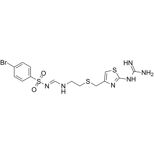SMILESNC(=N)Nc1nc(CSCCN\C=N\S(=O)(=O)c2ccc(Br)cc2)cs1