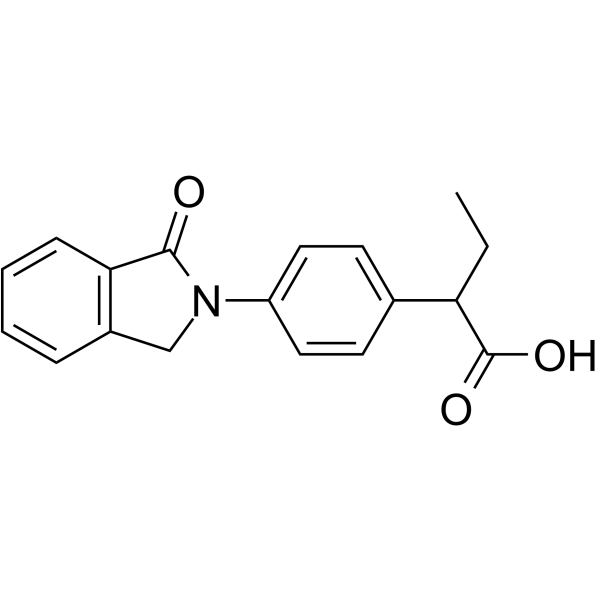 DescriptionIndobufen is an inhibitor of platelet aggregation and is a reversible platelet cyclooxygenase (Cox) activity inhibitor. Indobufen suppresses thromboxane A2 (TxA2) synthesis. Indobufen down-regulates tissue factor (TF) in monocytes.(In Vitro):Indobufen suppresses TxA2 but not PGE2 synthesis in LPS-stimulated monocytes. Indobufen causes the extent of ERK1/2 phosphorylation, whereas the levels of phosphorylated p38 are unaltered. Indobufen does not affect both Cox-1 and Cox-2 protein, whereas Indobufen reduces TxB2 levels.