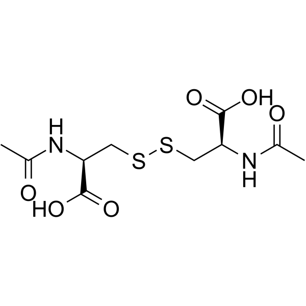 DescriptionN,N'-Diacetyl-L-cystine is the disulphide dimer of N-acetylcysteine with immunomodulating properties. N,N'-diacetyl-L-cystine also has antiatherosclerotic effects in Watanabe-heritable hyperlipidemic rabbit (WHHL) rabbits. N,N'-diacetyl-L-cystine is also an effective and orally active modulator of contact sensitivity/delayed-type hypersensitivity reactions in rodents.(In Vivo):N,N'-Diacetyl-L-cystine (DiNAC; 0-973.11 μg/kg; p.o.; daily; for 12 weeks; WHHL rabbits) treatment decreases by 50% thoracic aorta atherosclerosis. However, it has no affecting plasma lipid levels.