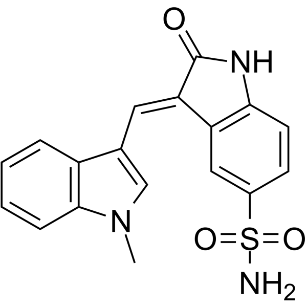 SMILESCn1cc(\C=C2\C(=O)Nc3ccc(cc23)S(N)(=O)=O)c2ccccc12