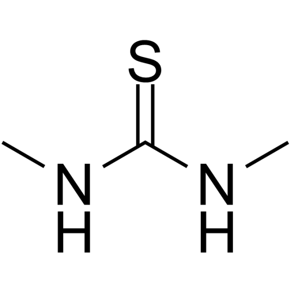 DescriptionN,N'-Dimethylthiourea (DMTU), isolated from Allii Sativi Bulbus, is an orally active scavenger of hydroxyl radical ( OH) and blocks OH production by activated neutrophils in vitro. N,N'-Dimethylthiourea protects against water-immersion restraint stress (WIRS)-induced gastric mucosal lesions in rats by exerting its antioxidant action including OH scavenging and anti-inflammatory action.(In Vivo):N,N'-Dimethylthiourea (DMTU; 1, 2.5, or 5 mmol/kg; orally) administered at 0.5 h before the onset of WIRS reduces the severity of gastric mucosal lesions with attenuation of the changes in the levels of gastric mucosal MPO, pro-inflammatory cytokines, LPO, NOx, nonprotein SH, and vitamin C and gastric adherent mucus found at 3 h after the onset of WIRS in a dose-dependent manner in Male Wistar rats aged 6 weeks .