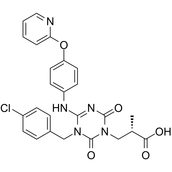 SMILESC(N1C(NC2=CC=C(OC3=CC=CC=N3)C=C2)=NC(=O)N(C[C@@H](C(O)=O)C)C1=O)C4=CC=C(Cl)C=C4