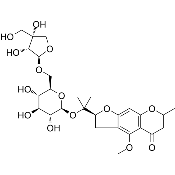 6”-O-Apiosyl-5-O-Methylvisammioside is one component of the traditional Chinese medicine Kang-Jing which has the functions of promoting blood circulation and dredging collaterals, dispersing wind and relieving pain.
