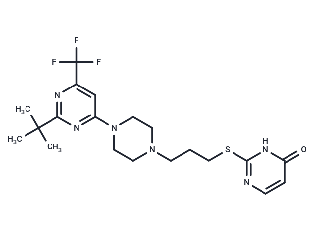 SMILESC(F)(F)(F)C1=CC(=NC(C(C)(C)C)=N1)N2CCN(CCCSC=3NC(=O)C=CN3)CC2