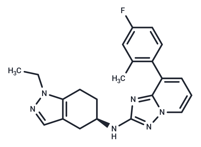 SMILESN(C=1N=C2C(=CC=CN2N1)C3=C(C)C=C(F)C=C3)[C@H]4CC5=C(CC4)N(CC)N=C5