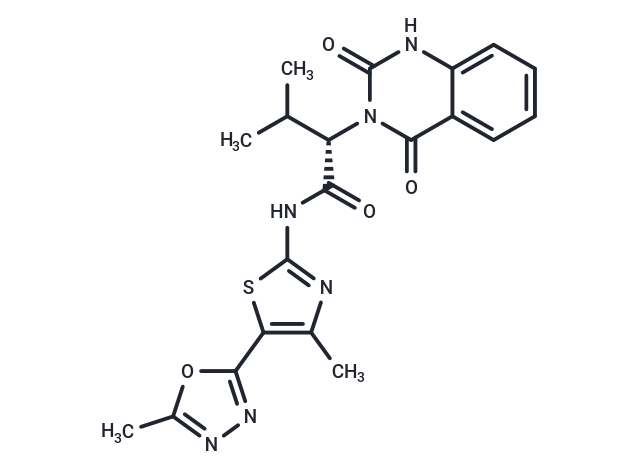 SMILESCC(C)[C@@H](C(=O)Nc1nc(C)c(s1)-c1nnc(C)o1)n1c(=O)[nH]c2ccccc2c1=O