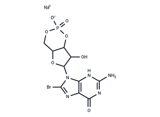 SMILES[Na+].Nc1nc(=O)c2nc(Br)n(C3OC4COP([O-])(=O)OC4C3O)c2[nH]1
