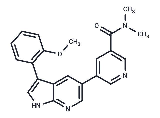 SMILESO=C(C1=CN=CC(=C1)C2=CN=C3NC=C(C=4C=CC=CC4OC)C3=C2)N(C)C