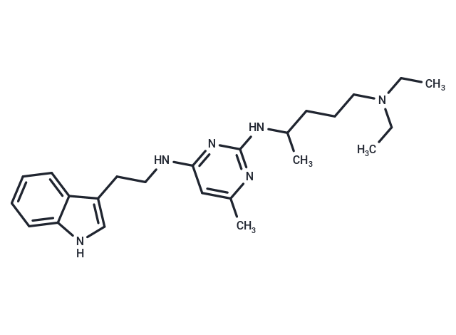 SMILESC(CNC1=NC(NC(CCCN(CC)CC)C)=NC(C)=C1)C=2C=3C(NC2)=CC=CC3