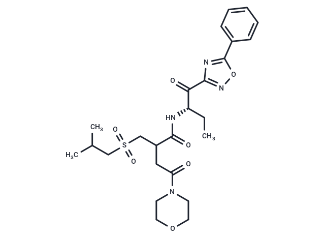 SMILESC([C@@H](NC(C(CC(=O)N1CCOCC1)CS(CC(C)C)(=O)=O)=O)CC)(=O)C=2N=C(ON2)C3=CC=CC=C3