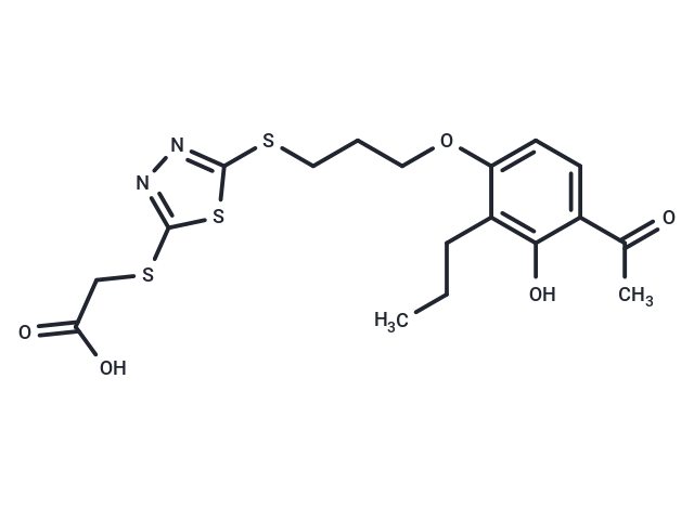 SMILESO=C(O)CSC1=NN=C(S1)SCCCOC2=CC=C(C(=O)C)C(O)=C2CCC