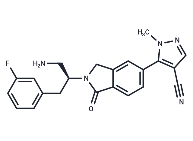 SMILESCn1ncc(C#N)c1-c1ccc2C(=O)N(Cc2c1)[C@H](CN)Cc1cccc(F)c1