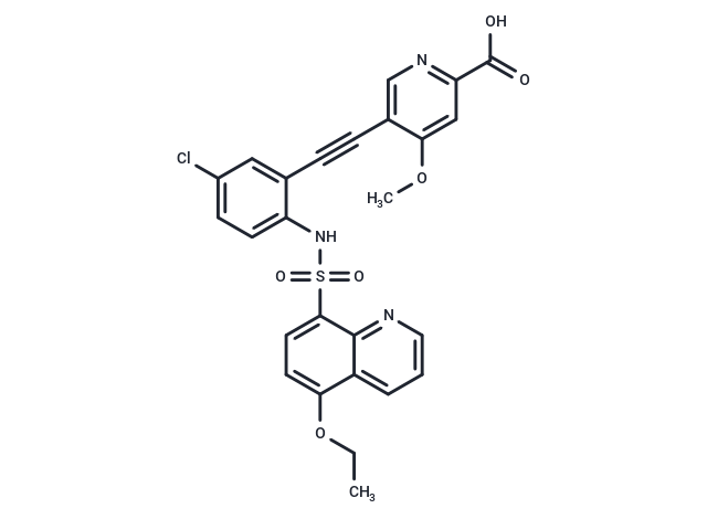 SMILESCCOc1ccc(c2ncccc12)S(=O)(=O)Nc1ccc(Cl)cc1C#Cc1cnc(cc1OC)C(O)=O