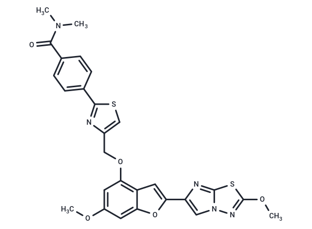 SMILESO(CC=1N=C(SC1)C2=CC=C(C(N(C)C)=O)C=C2)C3=C4C(OC(=C4)C5=CN6C(=N5)SC(OC)=N6)=CC(OC)=C3